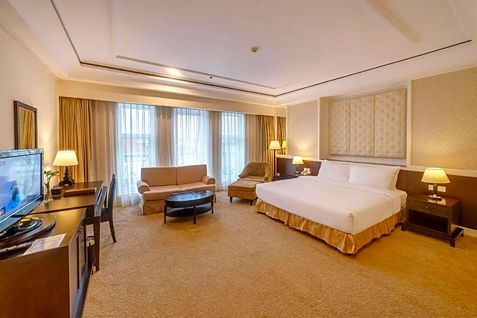 Featuring a private balcony, the suites are very spacious and feature a separate living room. They are equipped with a mini-bar, a safe and a flat-screen cable TV. Views of the city can be enjoyed from the suites.